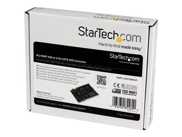 StarTech.com M.2 SATA SSD to 2.5in SATA Adapter - M.2 NGFF to SATA Converter - 7mm - Open-Frame Bracket - M2 Hard Drive Adapter (SAT32M225) - Diskkontroller - 1 Kanal - SATA 6Gb/s - SATA 6Gb/s - for P/N: BRACKET125PT, BRACKET125PTP, SATERASER4, SDOCK1EU3P2, SDOCK4U313, USB31C2SAT3