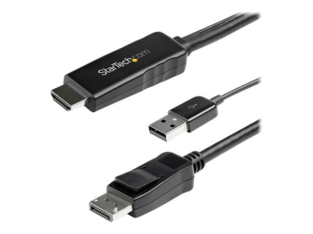 StarTech.com 2m (6ft) HDMI to DisplayPort Cable 4K 30Hz, Active HDMI 1.4 to DP 1.2 Adapter Converter Cable with Audio, USB Powered, Mac & Windows, HDMI Laptop to DP Monitor, Male/Male - Built-In USB Cable - Videokabel - HDMI, USB (kun strøm) hann til DisplayPort hann - 2 m - svart - 4K-støtte, aktiv HD2DPMM2M