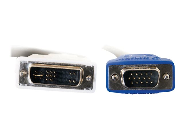 - Connects a VGA port on a computer to a monitor with a DVI-I connector