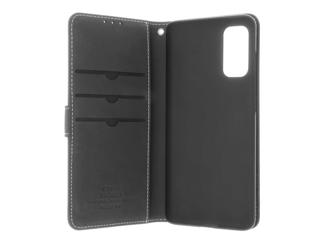 Insmat Exclusive Flip Case - Lommebok for mobiltelefon - ekte skinn, papir, kartong, aluminiumsfolie - svart - for Samsung Galaxy S20, S20 5G