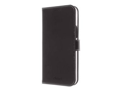 Insmat Exclusive - Lommebok for mobiltelefon - ekte skinn, termoplast-polyuretan (TPU), kartong+papir+aluminiumsfolie, bomullssting - svart - for Apple iPhone 13 Pro Max 650-3003