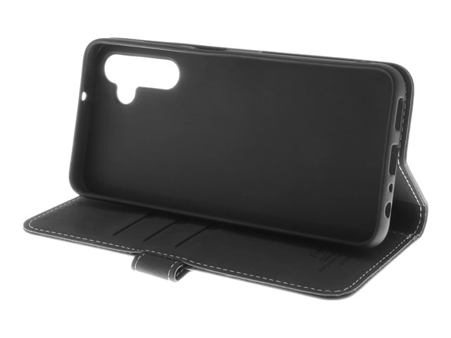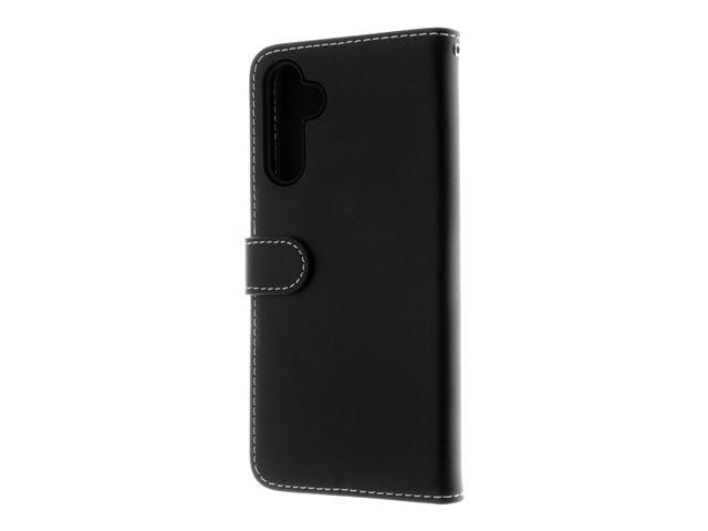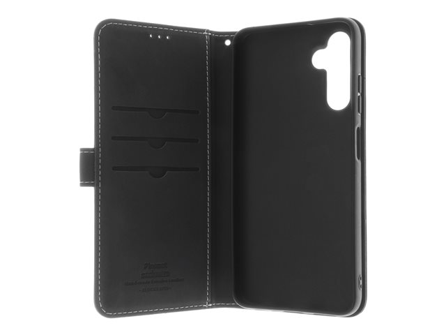 Insmat Exclusive - Lommebok for mobiltelefon - lær, kartong+papir+aluminiumsfolie, termoplastisk polyuretan (TPU) holder, bomullssting - svart - for Samsung Galaxy A05s 650-3216