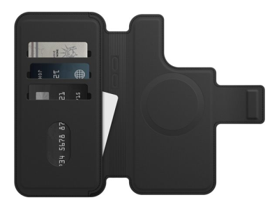 OtterBox - Lommebok for mobiltelefon - MagSafe-samsvar - syntetisk skinn - skyggesvart - for Apple iPhone 14 Pro Max