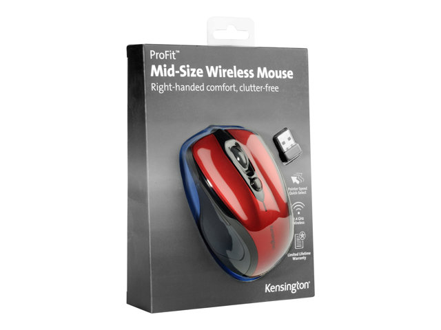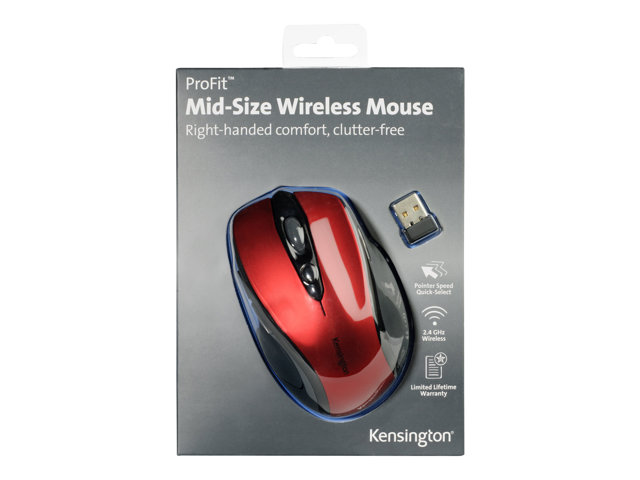 Kensington Pro Fit Mid-Size - Mus - høyrehendt - optisk - trådløs - 2.4 GHz - USB trådløs mottaker - rubinrød