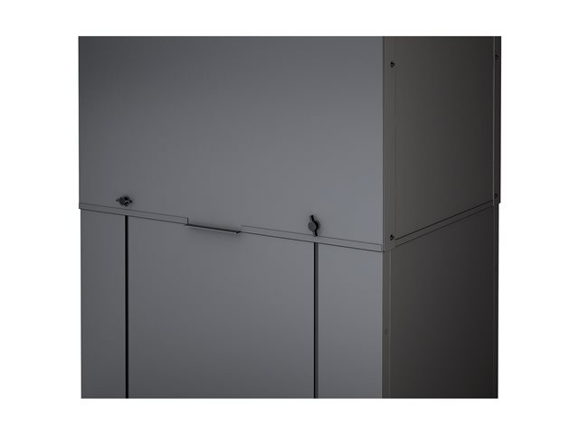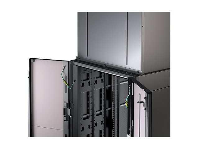 Vertical Exhaust Duct (VED) system for NetShelter SX is a low cost easy to install solution that mounts to the top rear of NetShelter enclosures to capture and return hot exhaust air to room cooling systems.