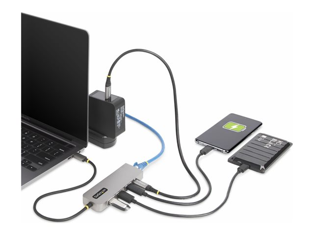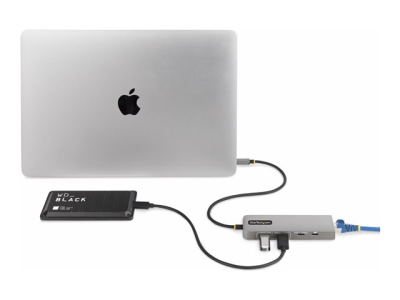The StarTech.com 3-Port USB-C Hub is a versatile addition to any laptop setup, designed to enhance productivity and connectivity. With two USB-A and one USB-C port, it offers expanded peripheral connections, while USB 3.2 Gen 2 technology ensures rapid data transfer speeds. The hub also features a 2.5 Gigabit Ethernet port for a faster and more reliable network connection. Its 100W Power Delivery Passthrough allows for efficient laptop charging, ensuring your device remains powered without occupying additional ports. Compliant with Plug-and-Play standards and compatible with a wide range of operating systems, this compact and durable hub is an essential tool for professionals on-the-go.