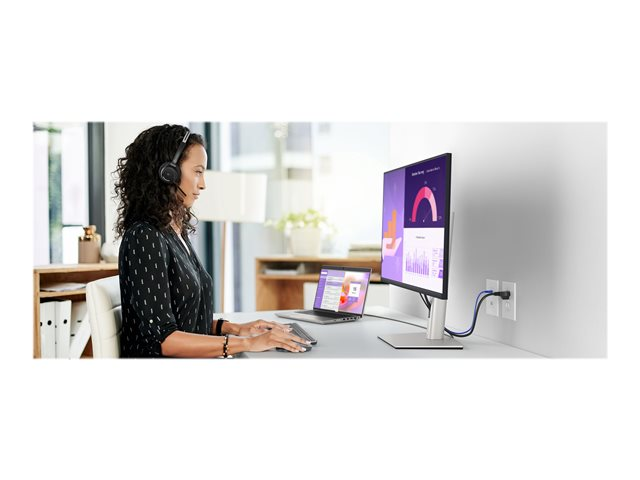 Designet med tanke på velvære: ComfortView Plus, en innebygd skjerm med lavt blått lys som alltid er på, reduserer potensielt skadelige utslipp av blått lys uten at det går ut over fargene. Vakkert og funksjonelt: Den flotte svarte finishen og den lille sokkelen komplimenterer et forbedret kabelhåndteringssystem som skjuler ledningene i skjermhøyttaleren. Praktiske justeringsmuligheter: Opplev komfort som er skreddersydd for deg ved å vippe, svinge, dreie og justere høyden på skjermen for optimal visningskomfort.
