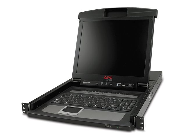 The Rack LCD Console features a 17" LCD panel, a full keyboard, and a touch pad in a rackmountable sliding housing. The Rack LCD Console is intended for use with compatible target devices (a KVM switch or server). The device is easily installed and minimizes support and maintenance costs, ensuring lower cost of ownership. The ultra-thin LCD screen, touchpad technology, and easy-to-install slide rails combine to form a high-quality, streamlined solution built for server management. The Rack LCD can be used in a variety of IT environments, from computer rooms to large data centers.