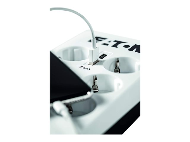 Eaton Protection Box 6 USB DIN - Overspenningsavleder - AC 220-250 V - 2500 watt - utgangskontakter: 6 - hvit