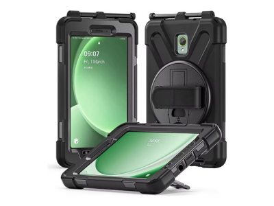 The case is like a shell; it protects the cover as well as sides and corners of the Tab. Raised lip protects screen of your Tab. The phone can be freely used without fear of damage, shocks and bumps. With Rugged Armor on, the Tab will gain full protection against scratches and a military appearance. The case has all necessary cutouts which provides an easy access to all buttons, controls and ports. The power and volume buttons are completely covered with rubber but it does not interfere with their functions. Camera, flash, headphones, speaker and charger holes guarantee the full functionality of the phone. Thanks to an integrated stand on the back panel it has never been easier to surf on the Internet and watch movies.