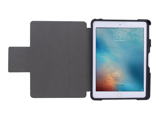 • Cover easily folds into stand without blocking camera
